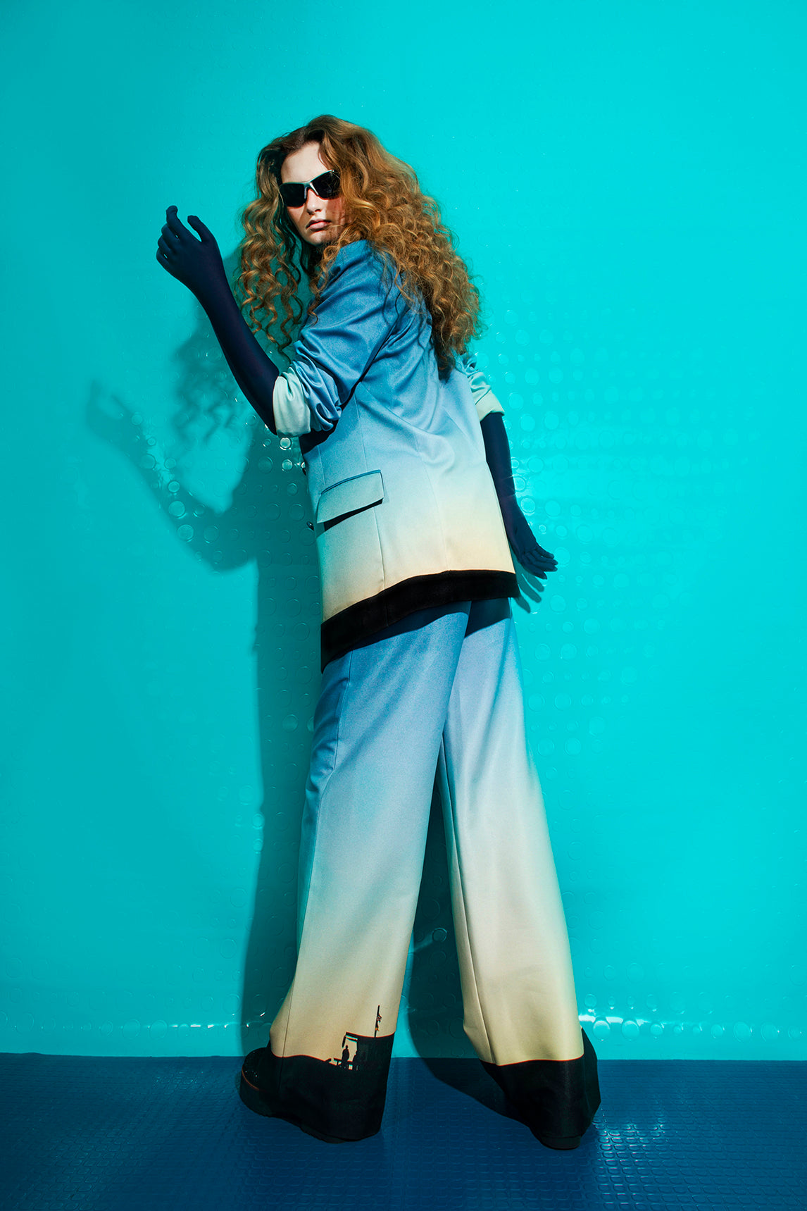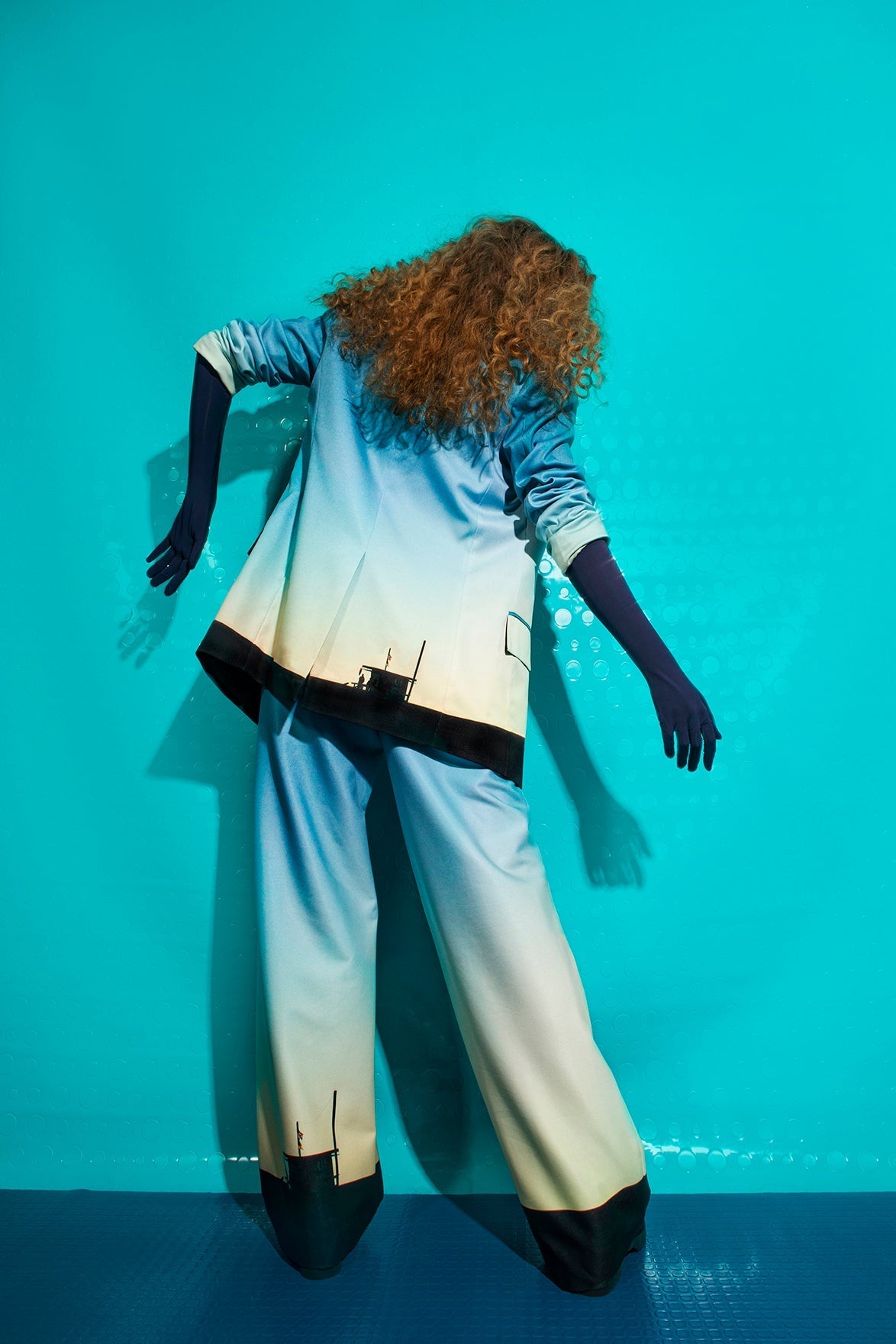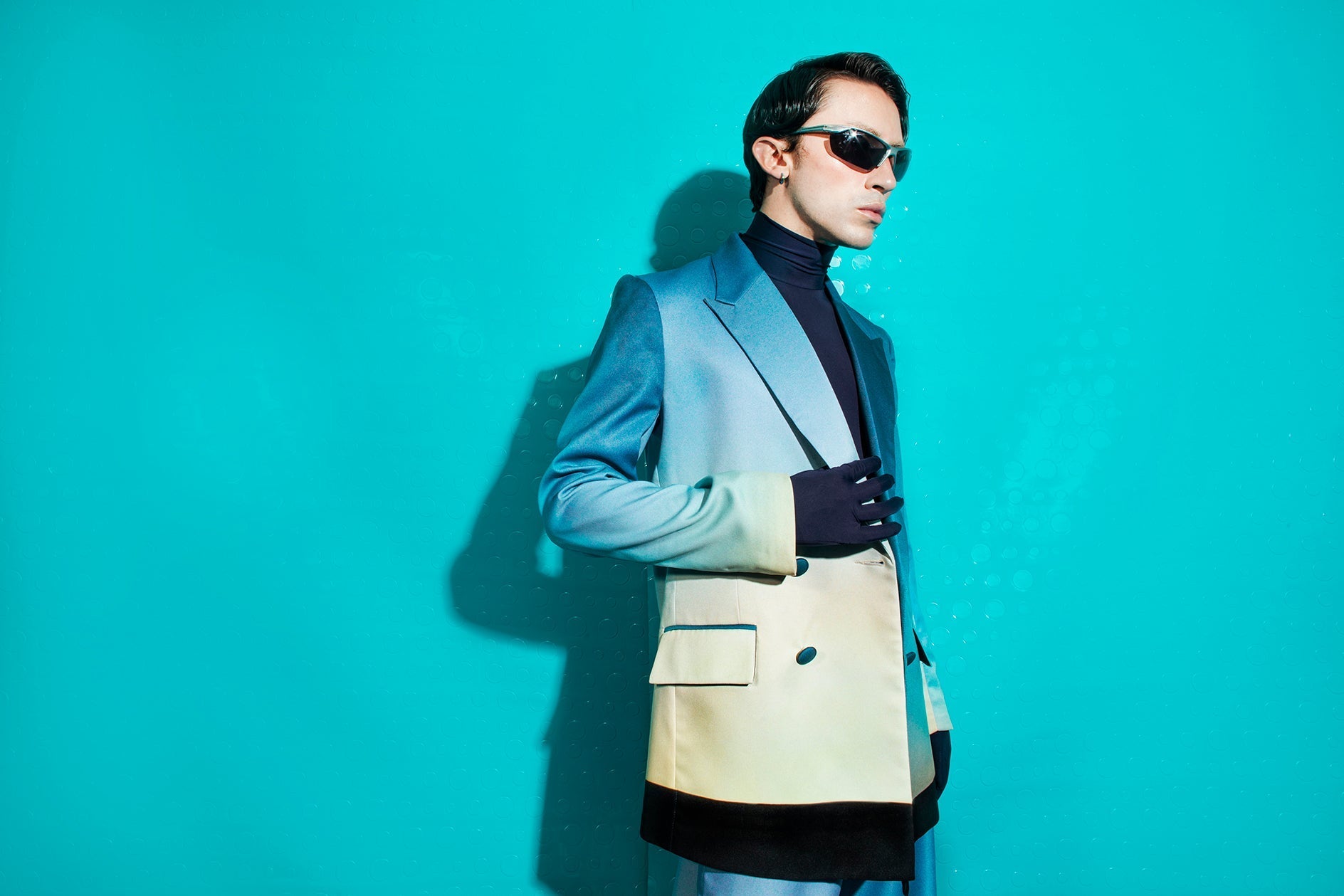 Classic cut double-breasted long-sleeved blazer with two buttons and pockets.