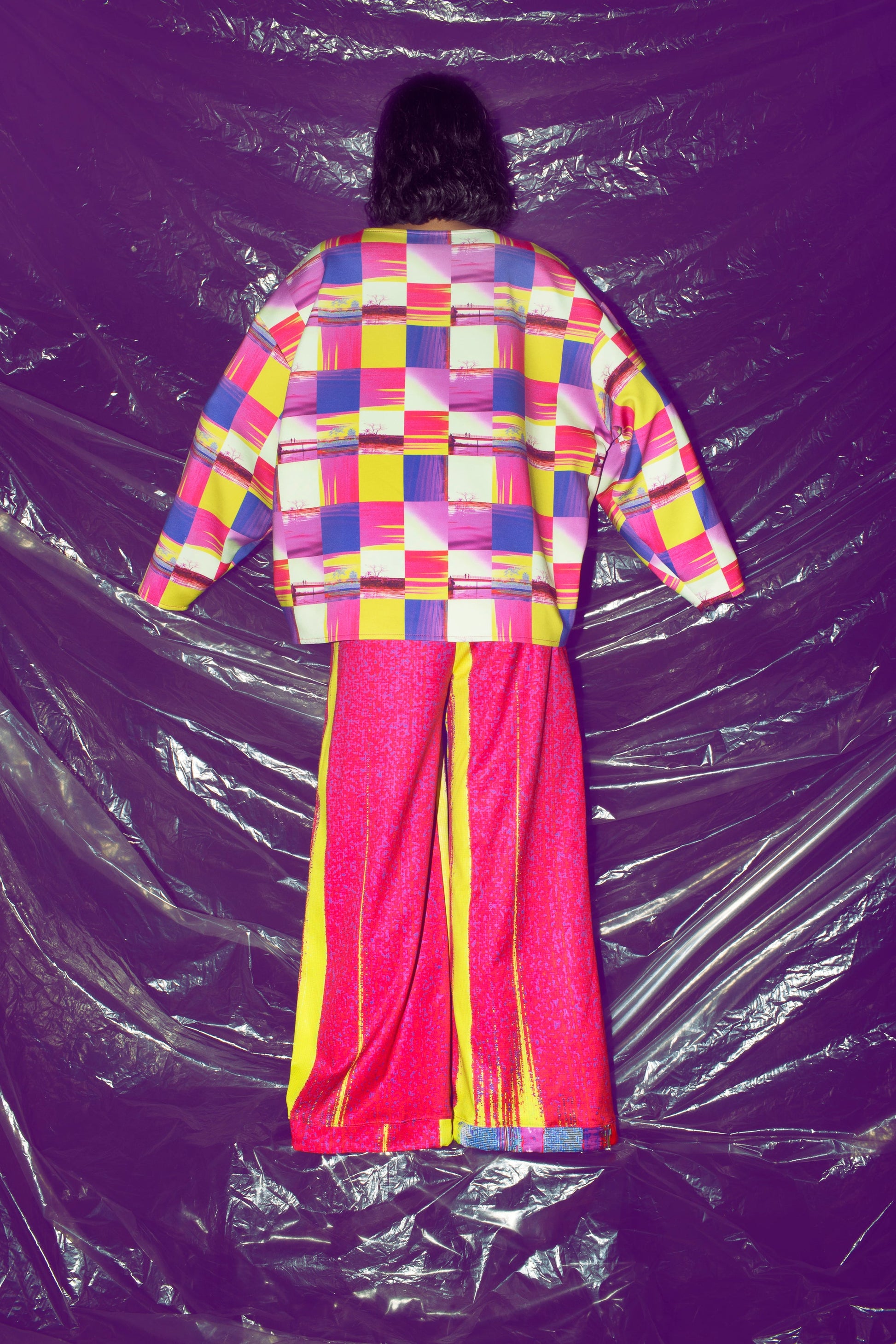One of our best sellers, this piece is designed for a loose and comfy fit, made from recycled polyester jersey with a hint of stretch for added comfort. Crafted from 88% polyester and 12% elastane, with certified-origin materials, it is proudly made in Colombia. The garment features photographs from our archive, captured in Concepción, Bolivia (16°07’56”S 62°02’32”W) in 2018, bringing a distinctive touch to its design.