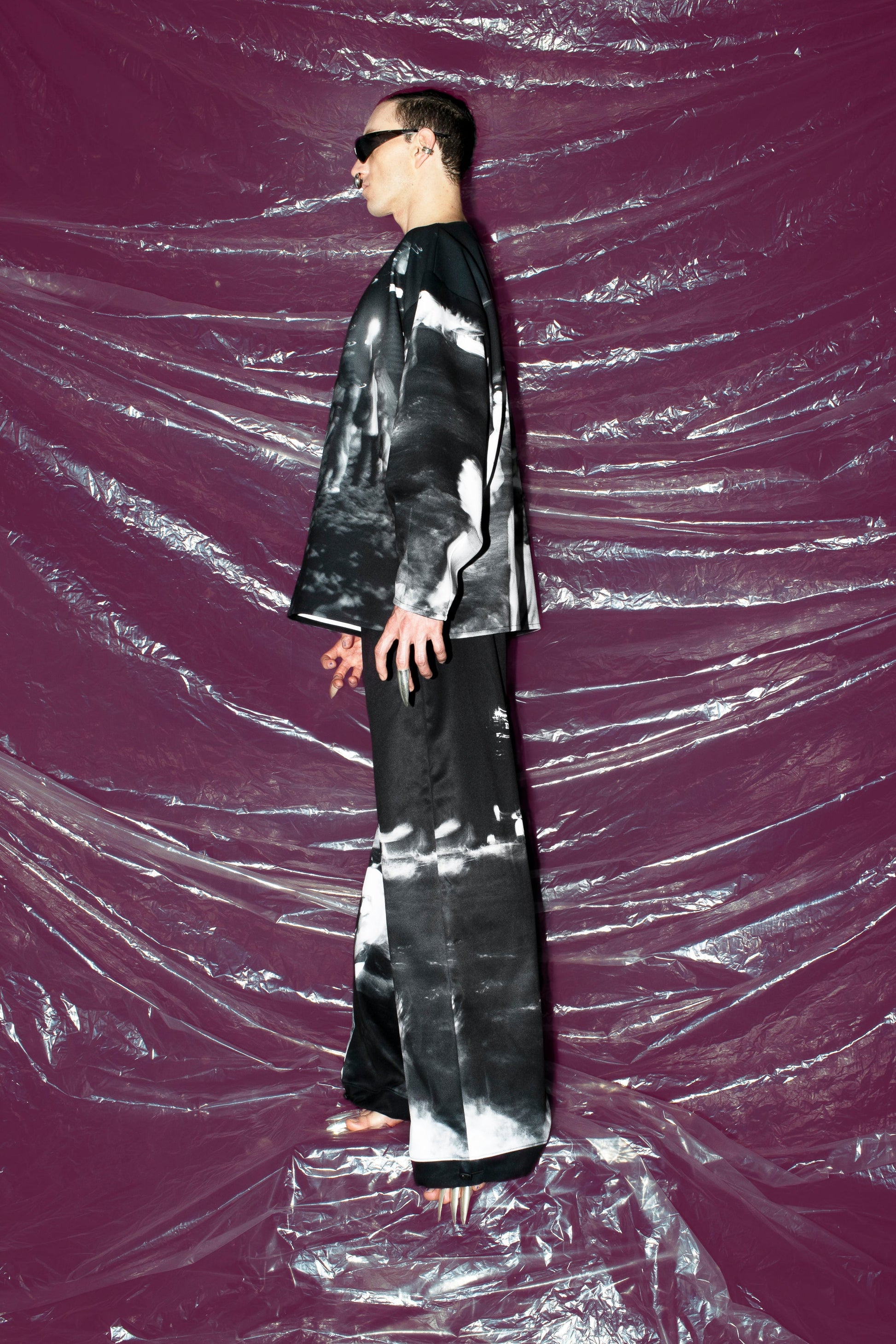 One of our best sellers, this piece is cut for a loose and comfy fit, crafted from recycled polyester jersey with a touch of elastane for added stretch and comfort. Made from 88% polyester and 12% elastane, with certified-origin materials, it’s produced in Colombia. This garment was brought to life using photographs from our archive, captured in Busan, South Korea (35°09’30”N 129°09’39”E) in 2018, adding a unique story to its design.