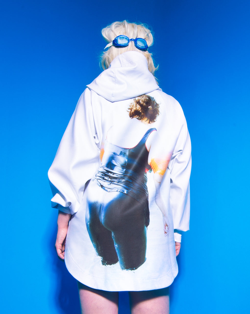 This oversized design combines relaxed volume with practical details, featuring long sleeves, a standing collar, and a generous hood for versatile coverage. Printed with a pattern inspired by photographs taken in Barcelona, Spain, it’s crafted from 100% polyester to ensure lightweight durability and effortless style—perfect for layering any time of year.