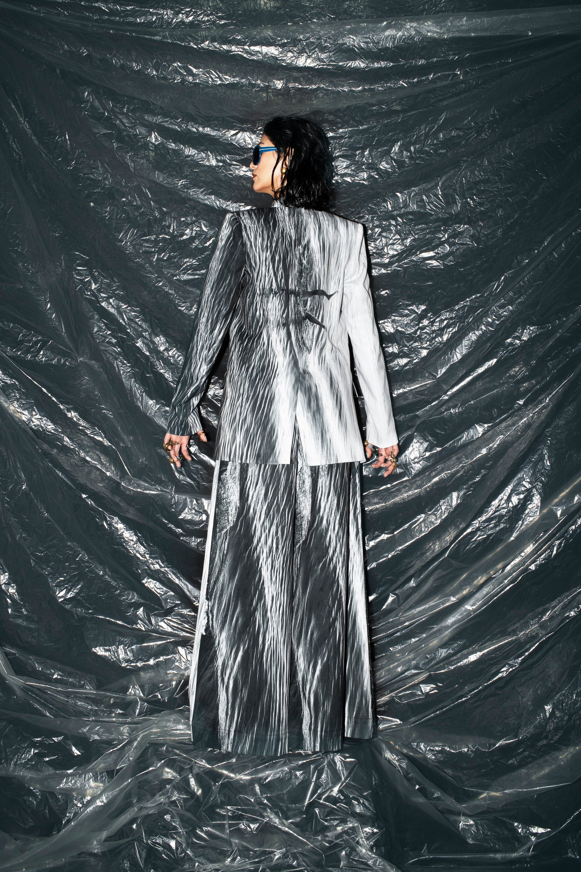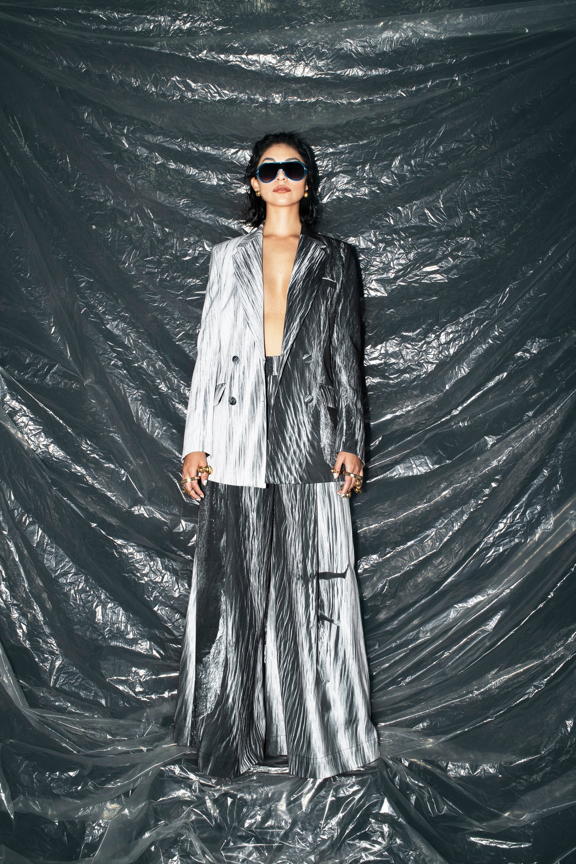 Double-breasted blazer featuring impeccable, classic tailoring — a must-have piece for any fashion-forward wardrobe. Designed for versatility and effortless sophistication, it’s crafted from 100% certified origin polyester and made in Colombia. This garment carries visual narratives through photographs from our archive, taken in Guainía, Colombia (4°01’42”N 67°42’16”W) in 2021.