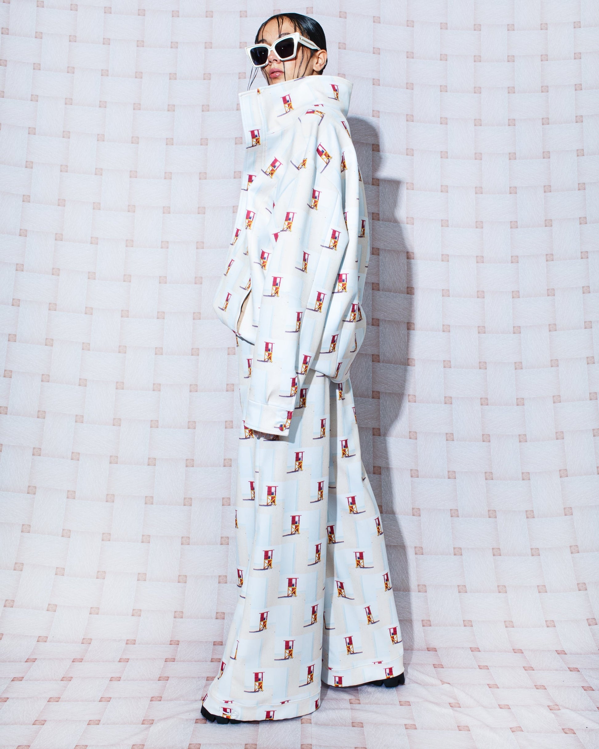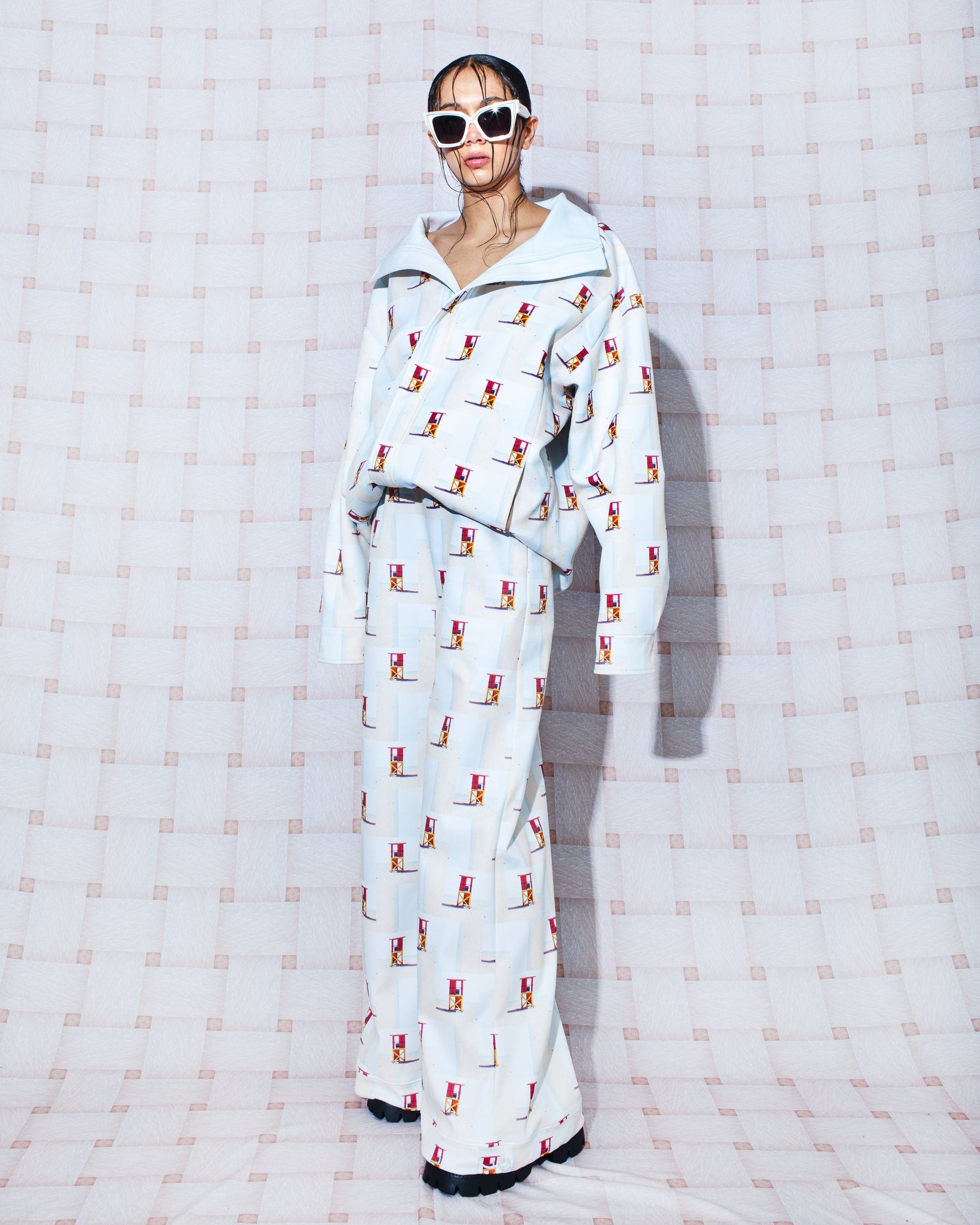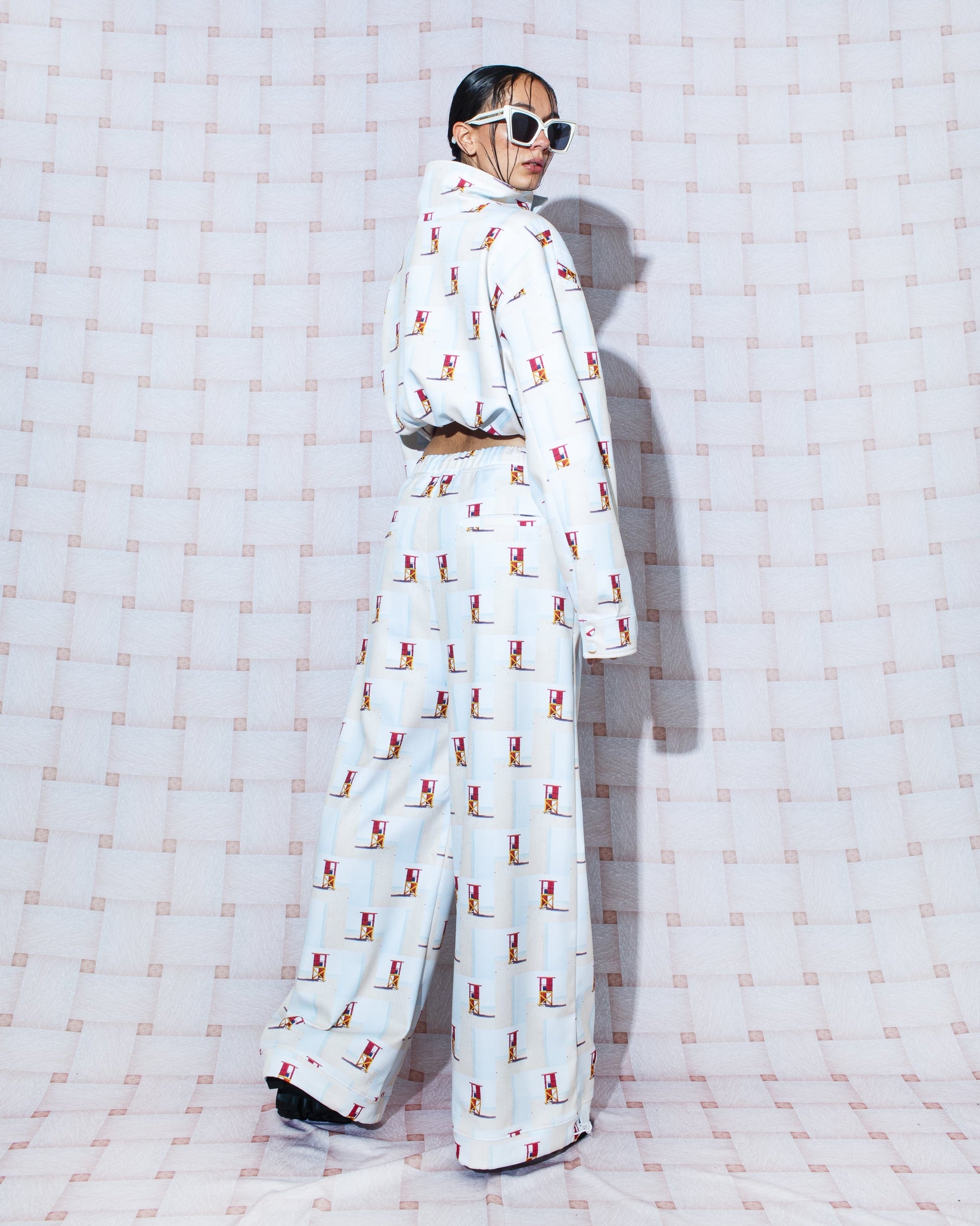 Our new joggers maximize comfort. Made from a lightweight fabric, they are breathable, fresh, and durable. Adjust the cuffs for a more fitted look. The garment is printed with a photographic sequence in sandy and blue tones, applied through digital sublimation using water-based inks. Made in Colombia with recycled polyester, this design incorporates images from our archive, captured in Camarones, Guajira, Colombia, on August 12, 2023, at 12:38 p.m. (9º47'48"N 75º50'04"W).