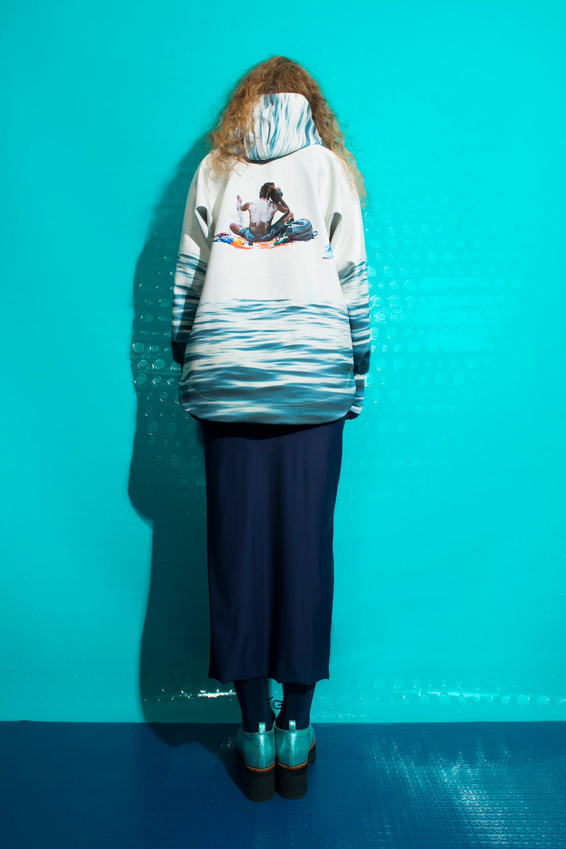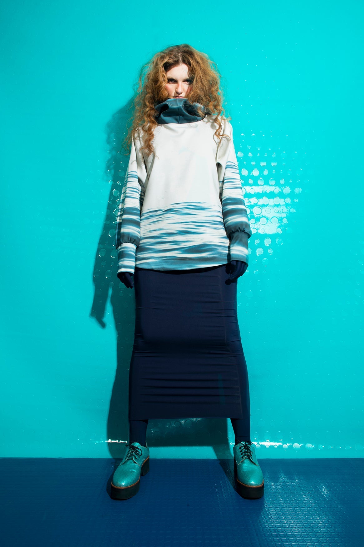 Long-sleeved hoodie with a wide silhouette, asymmetric cut, wide sleeves. The pictures of this pattern were taken in Miami, USA 25°46’21.08”N 80° 7’49.48”W and Contadora Island, Panama 8°37'52.7"N 79°02'38.8"W