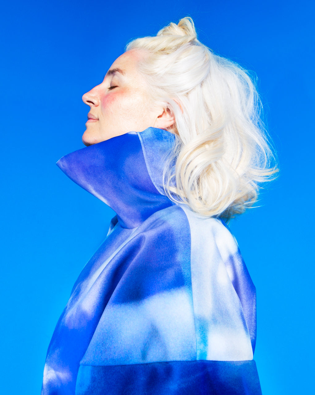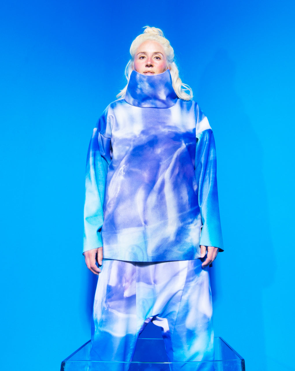 This piece features a clean, minimal silhouette with long sleeves and a standing collar for a modern, refined look. Its distinctive pattern is inspired by photographs taken in Osaka, Japan, adding a subtle cultural imprint to the design. Crafted from 100% polyester, it offers lightweight comfort and durable wear for everyday versatility.