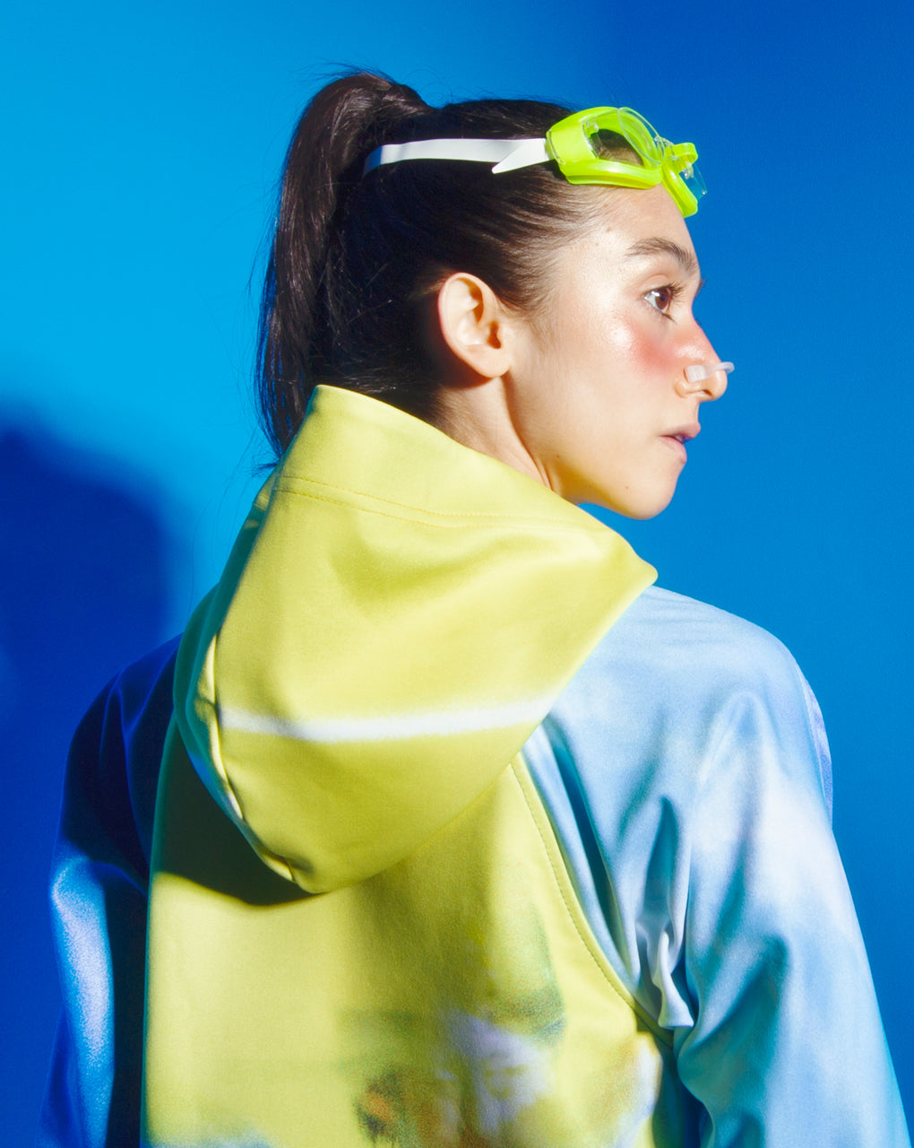 This oversized design combines relaxed volume with practical details, featuring long sleeves, a standing collar, and a generous hood for versatile coverage. Printed with a pattern inspired by photographs taken in Barcelona, Spain, it’s crafted from 100% polyester to ensure lightweight durability and effortless style—perfect for layering any time of year.