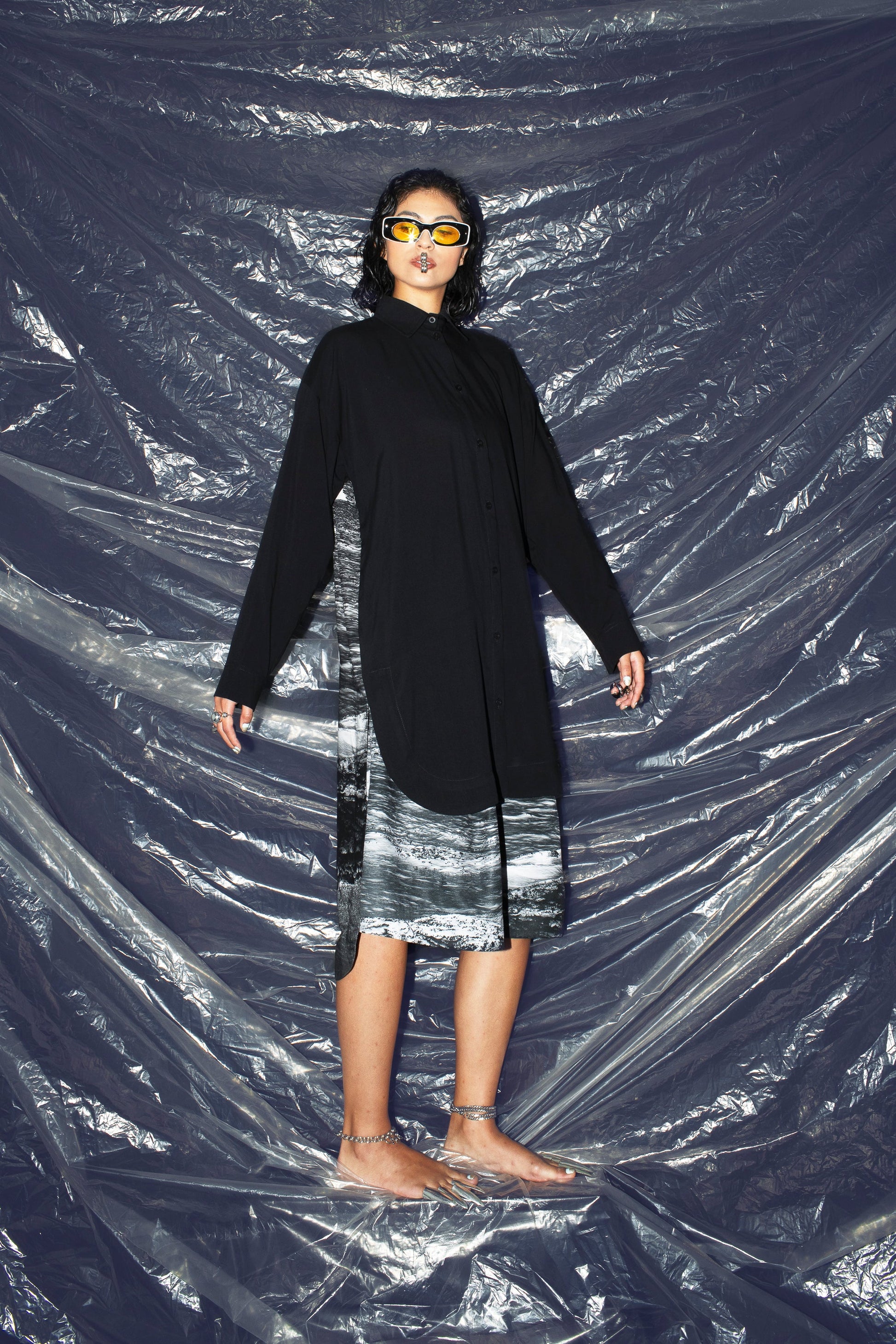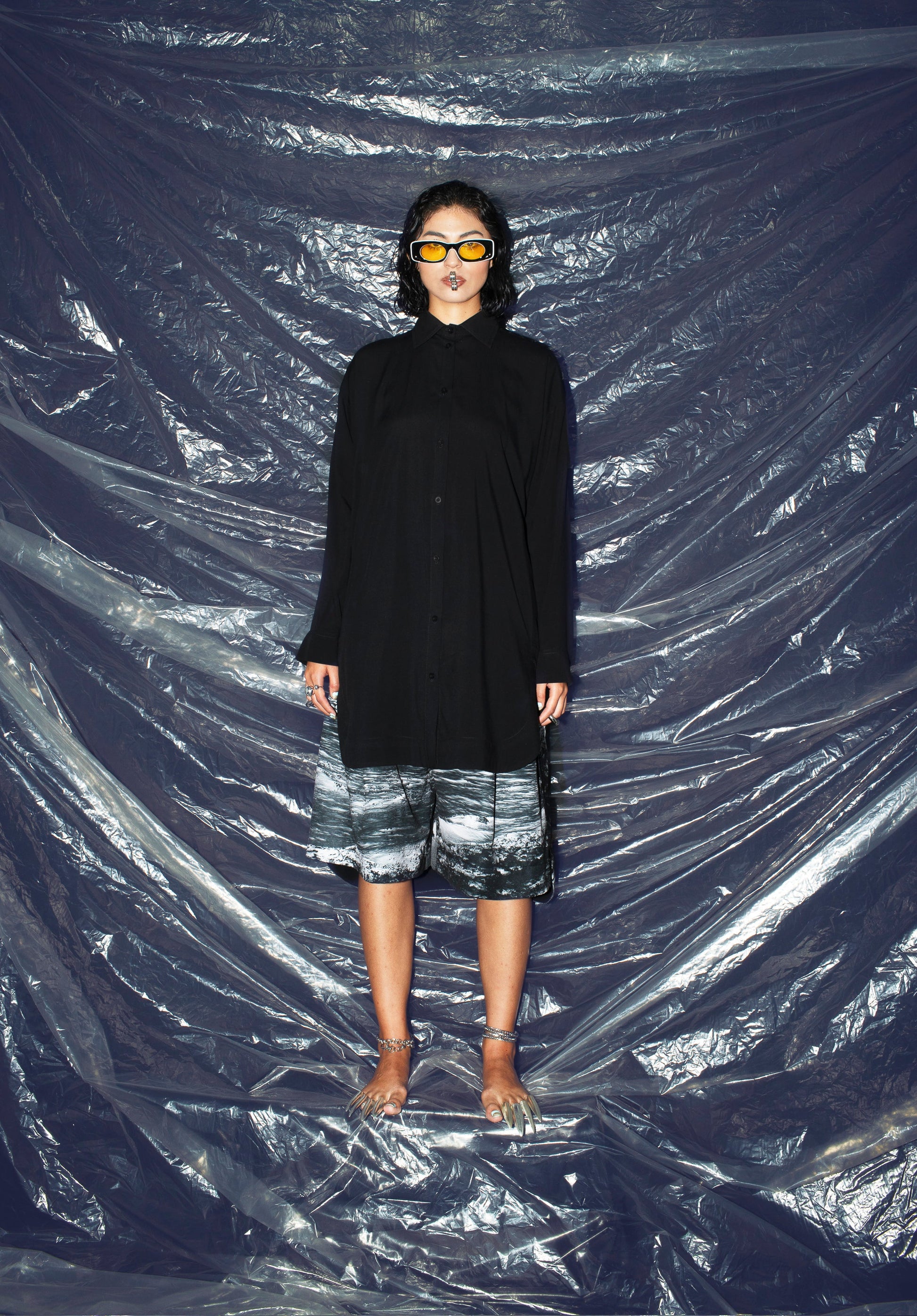 The kimona shirt has been a staple in our collections since the very beginning. This updated version features long sleeves and an elongated back, offering a relaxed silhouette that works effortlessly on its own or layered over a tank or tee. Made in Colombia from 100% certified-origin polyester, this garment showcases prints created from photographs in our archive, captured in Palomino, Colombia (11°15’11”N 73°32’42”W) in 2023 — a piece that carries both story and place within its fabric.
