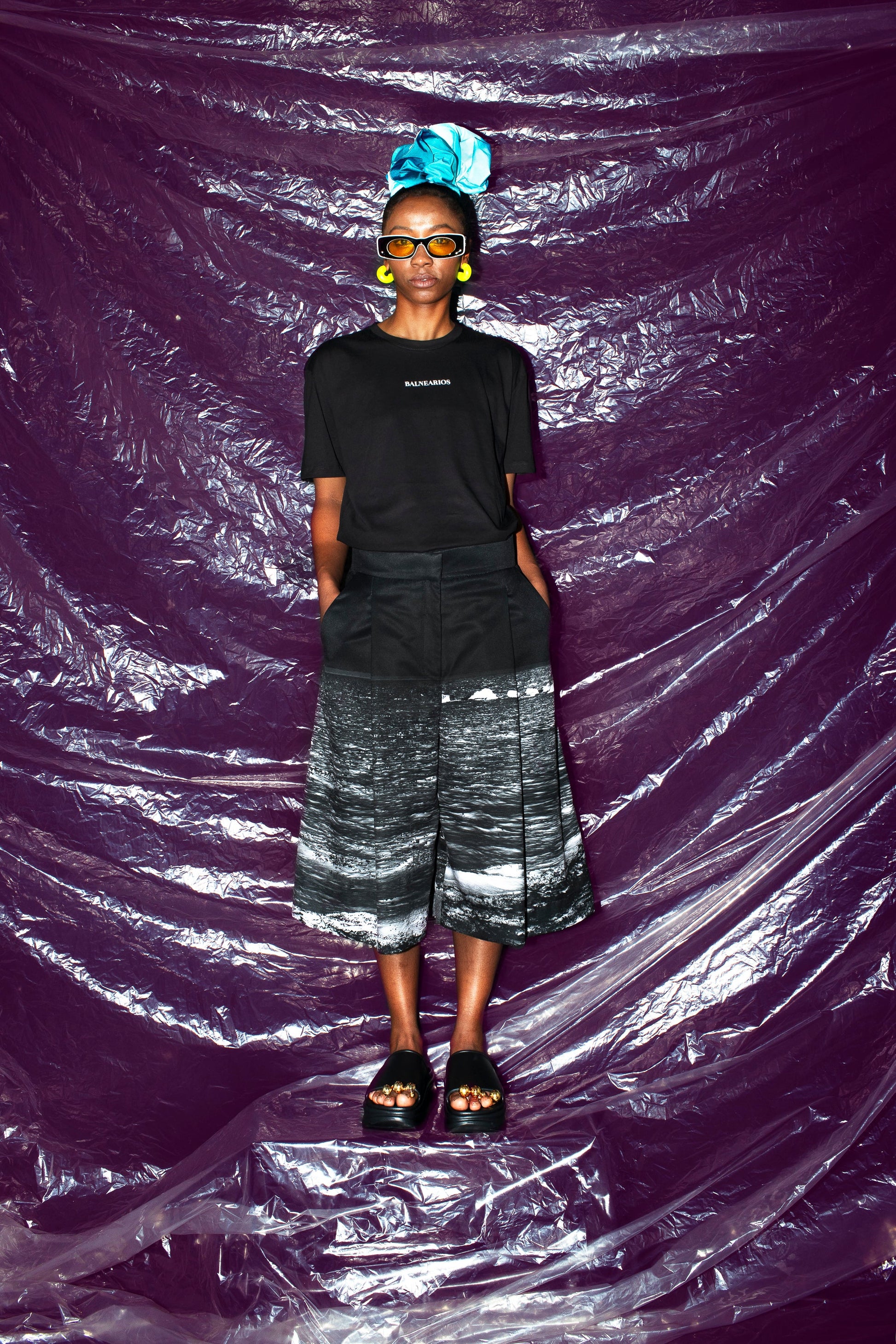 For this Volume, we decided to transform our iconic palazzo pants into effortlessly cool bermudas. Designed with a wide leg silhouette, they flow smoothly from the hips to the knees, offering freedom of movement and a relaxed, contemporary vibe. Made in Colombia from 100% polyester with certified origin, this garment features a print created from photographs in our archive, captured in Palomino, Colombia (11°15’11”N 73°32’42”W) in 2023 — turning every piece into a wearable memory.